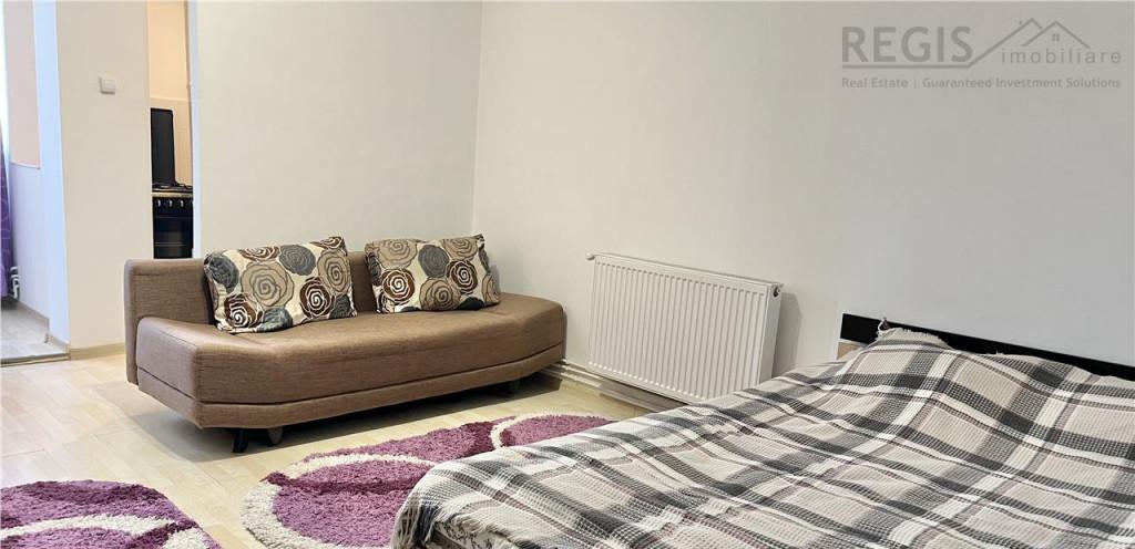 ID intern 6388 Comision 0 pentru cumparator Regis Imobiliare va prezinta spre vanzare o garsoniera spatioasa situata in zona Spitalului Judetean Proprietatea cu o suprafata de 30mp utili este situata la parterul unui bloc de 8 etaje si este formata din -camera -bucatarie -baie -balcon Proprietatea se vinde partial mobilata -biblioteca in living -bucataria cu mobilier si electrocasnice aragaz cu cuptor masina de spalat rufe masa si scaune de bucatarie -dulap hol Garsoniera beneficiaza si de beci cu suprafata egala In imediata proximitate se gasesc Spitalul Judetean Piata Astra scoli si gradinite licee mijloace de transport in comun clinici medicale si de infrumusetare si multe alte facilitati Proprietatea reprezinta o oportunitate atat ca investitie cat si ca locuinta personala Va asteptam cu drag la vizionari