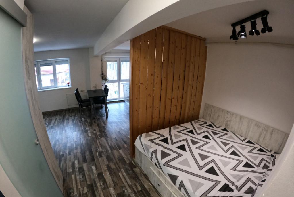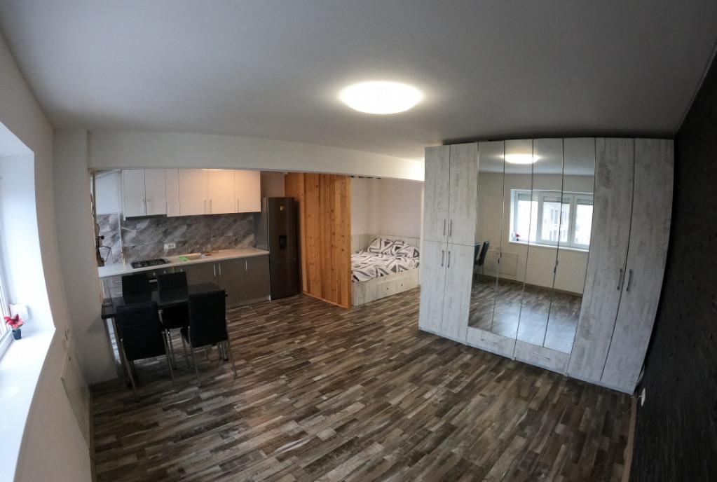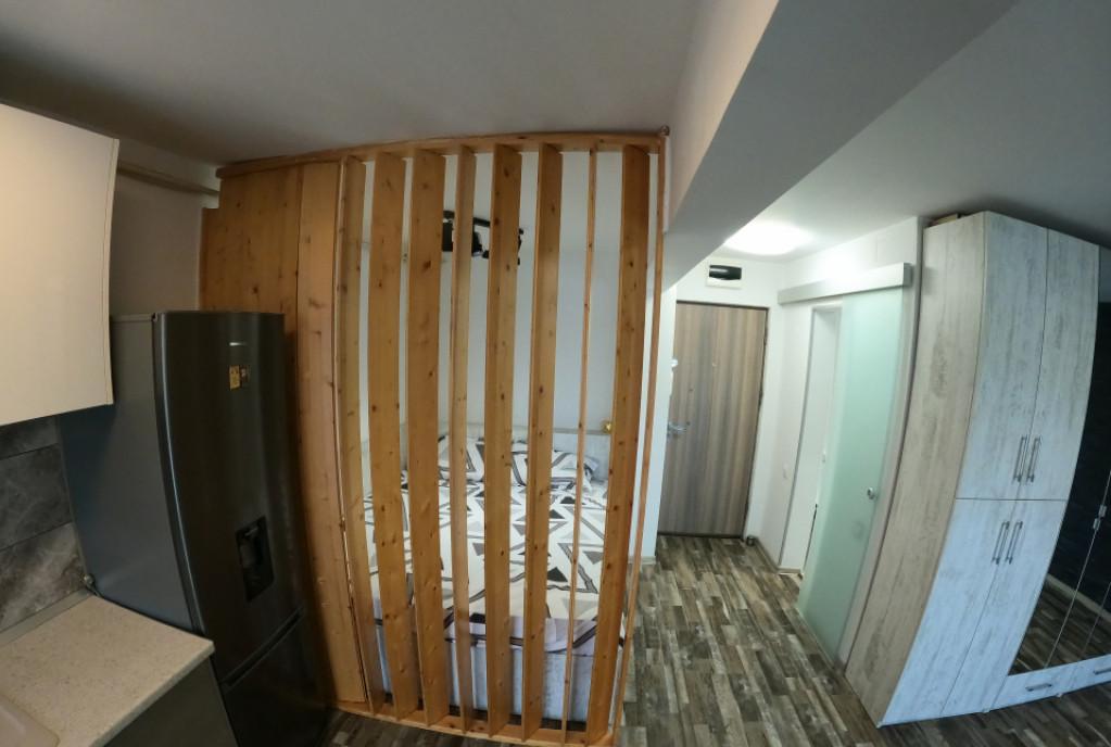 Va oferim spre inchiriere o garsoniera situata in incinta complexului Sun Royal View - strada Emil Racovita nr 3-5 langa Kaufland Garsoniera a fost amenajata cu drag este primitoare aerisita luminoasa functionala si cu personalitate adresandu-se unei persoane dinamice Mobilierul este modern si functional spatiile de depozitare fiind bine compartimentate Suprafata a fost compartimentata foarte eficient intr-o camera mare spatioasa impartita in plan deschis in doua zone respectiv zona de zi o canapea foarte confortabila birou cat si zona de noapte pat dublu cu depozitare - pentru care s-a ales o saltea hard din gama Luxury Mobexpert pentru nopti linistite si relaxante acasa Bucataria complet mobilata si echipata cu electrocasnice de ultima generatie masina de spalat vase plita prin inductie cuptor electric hota frigider masina de spalat rufe cu uscator Balconul este spatios si ofera o priveliste panoramica Baie dipune de un sistem din sticla modern -par...