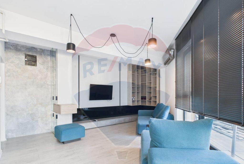 Va prezint spre inchiriere un duplex spectaculos situat intr-un ansamblu rezidential pe strada Drajna la doar cateva minute de mers pe jos de statia de metrou Grozavesti si Universitatea Politehnica Are o suprafata generoasa de 90 mp utili compartimentat modern pe doua niveluri cu scara interioara eleganta si o terasa de 20 mp cu vedere panoramica asupra orasului Se afla la etajul 7 are 3 camere impartit astfel - primul nivel livind spatios si luminos cu iesire pe terasa bucatarie mobilata si utilata cu toate electrocasnicele de care ai nevoie multiple spatii de depozitare si o baie cu dus - al doilea nivel camera spatioasa nemobilata care poate fi folosita ca birou sau dormitor dormitorul matrimonial cu baie privata si dressing In pret este inclus si un loc de parcare din parcarea subterana Zona excelenta cu numeroase mijloace de transport in comun centre comerciale si Universitatea Politehnica
