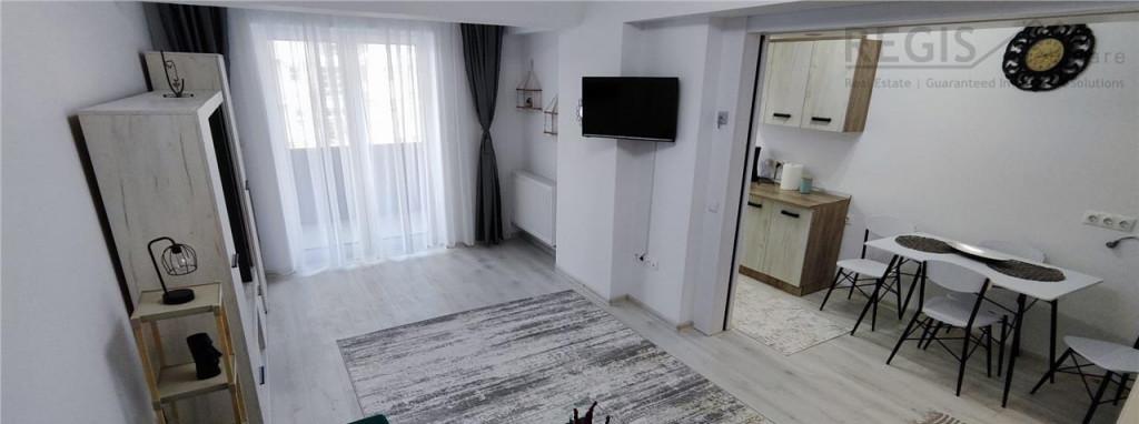 REGIS Imobiliare va propune spre inchiriere o garsoniera noua moderna complet mobilata si utila situata in cartierul rezidential Avantgarden 3 Faza 5 Complexul rezidential Avantgarden este unul din cele mai ingrijite cartiere si este vestit datorita calitatii constructiei suprafetelor generoase strazilor aerisite spatiilor verzi locurilor de joaca pentru copii si de relaxare cat si datorita accesului rapid spre centrul orasului Garsoniera este situata la etajul 1 al unui bloc cu 9 etaje Are o suprafata generoasa de 40mp oferind confortul si functionalitatea necesare unui trai modern Proprietatea este compartimentata astfel bucataria complet mobilata si utilata inchisa cu un perete mobil care prin manevrare usoara poate crea un spatiu open space camera mobilata cu un coltar extensibil baie dotata cu cada complet echipata Proprietatea dispune de loc de parcare Prietenii patrupezi de talie mica sunt bineveniti - Comisionul companiei este de 50 TVA din prima luna de chirie