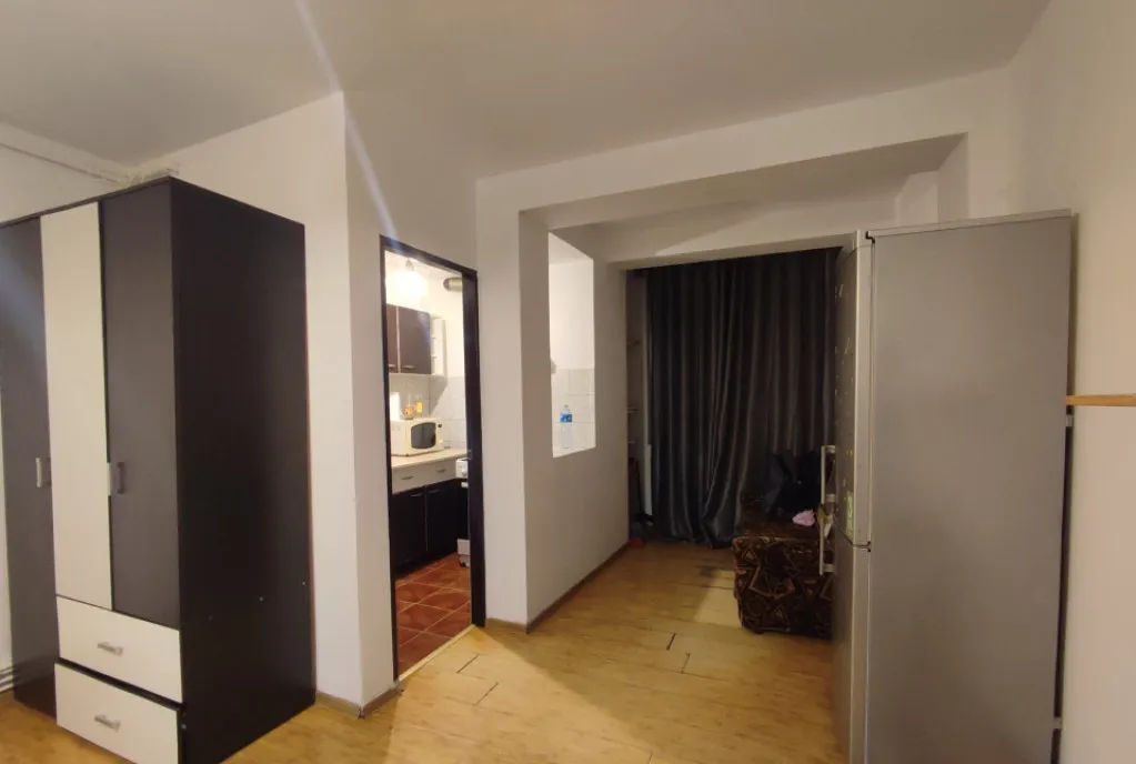 Cu o suprafață totală de 35 mp, această garsonieră impresionează printr-o sufragerie generoasă și luminoasă, ce include și o zonă extinsă de aproximativ 5 mp – ideală pentru amenajarea unui spațiu de relaxare sau birou. Bucătăria este separată, oferind funcționalitate, iar baia este echipată cu cadă. În plus, spațiul beneficiază de debara, perfectă pentru depozitare.
