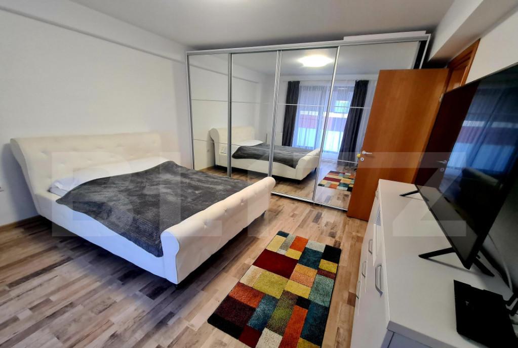 Blitz va propune spre vanzare un apartament modern care sa va ofere si confortul unei case Situat in Cartierul Arhitectilor intr-un bloc cochet cu regim de inaltime redus P 2 acest apartament cu 3 camere imbina perfect eleganta interioara cu bucuria unei gradini private generoase Caracteristici principale - Suprafata utila 57 7 mp compartimentata practic cu 2 dormitoare spatioase si living open space cu bucatarie foarte luminos amenajat modern cu finisaje de calitate - Baie eleganta dotata complet - Gradina privata de 125 mp amenajata cu gazon natural si zone distincte de relaxare terasa generoasa pentru mese in aer liber zona lounge cu canapea si umbrela spatiu barbecue colt dedicat copiilor cu leagan si trambulina Acces dublu din scara interioara a blocului sau direct din gradina Loc de parcare propriu inclus in pret parcare suplimentara pentru vizitatori Dotari de top - Incalzire in pardoseala pentru un confort termic supe...