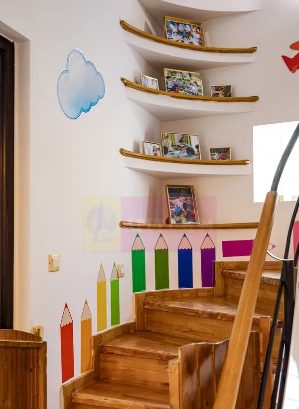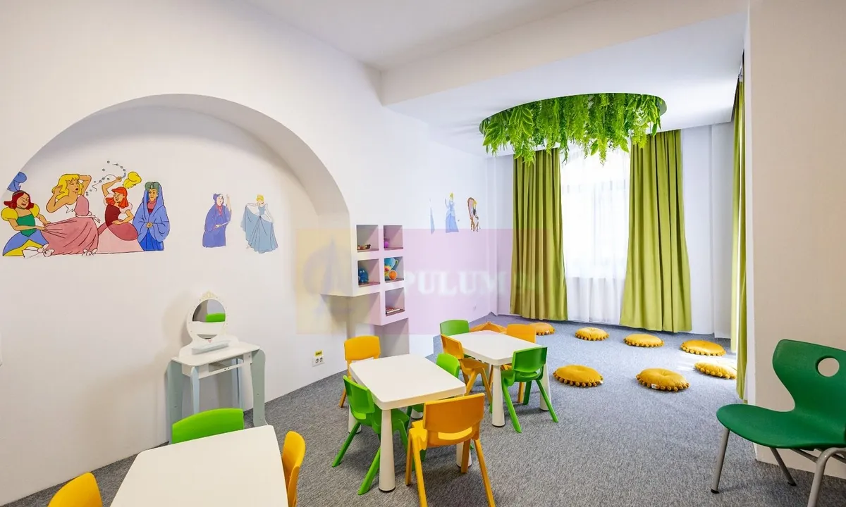 Vila este finalizata dupa anul 2004, structurata pe 4 nivele, Demisol, Parter, Etaj si Mansarda, cu o suprafata utila de aproximativ 120mp/nivel. La Demisol avem adapost de tip ALA, doua camere tehnice, centrala termica de mare putere, rezervor 1000 de litri apa menajera, bucatarie echipata cu aparatura profesionala, grup sanitar cu dus pentru personal la demisol. Parterul este primitor si luminos, cu zona de depozitare, cu sali pentru activitati si/sau odihna, luat masa, camera pentru citit cu semineu, zona de joaca, birou -personal administrativ, acces terasa si curte, curtea este suficient de spatioasa pentru tot felul de activitati, aproximativ 250mp, la etaj se urca pe o frumoasa scara, etaj unde avem deasemenea mai multe sali multifunctionale ce pot fi folosite atat pentru activitati diverse, tot aici avem si un grup sanitar spatios cu strictul necesar pentru cei mici, un balcon mare tip terasa cu vedere spre curtea proprie, mansarda este gandita ca un apartament pentru locuit dar se poate schimba ca destinatie daca se doreste, aici ne bucuram de spatii mari, ferestre tip velux, si de multa lumina naturala ca de fapt in intreaga vila. Inaltimea camerelor permite asfel orice artificiu de design si amplasarea de aparatura si mobilier.