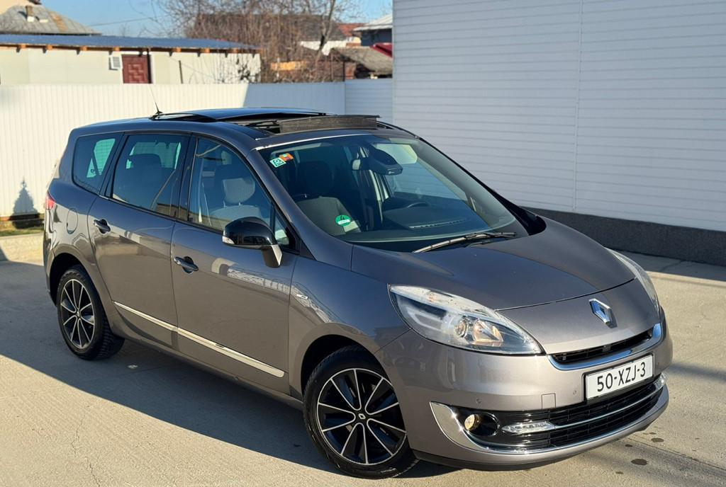 Renault grand scenic 7 locuri BOSE Transmisie manuala 6 1 trepte Motorizare 1 5 diesel 110cp Fabricatie 2012-12 Adusa personal din olanda pe roti Carvertical curat carte service km reali