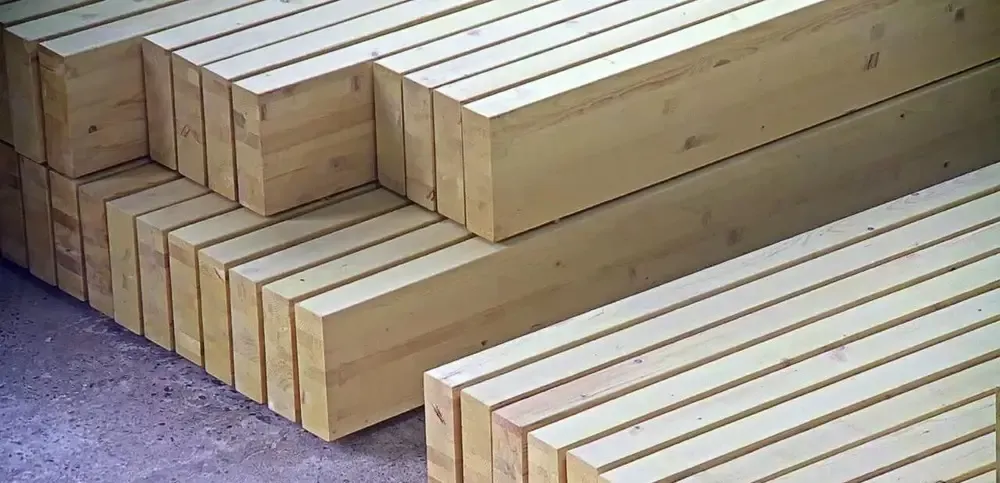 Lemnul este uscat in instalatia proprie de ultima generatie de la Muhlbock pana la 10 si incleiat prin presare controlata pentru a nu saraci imbinarea de adeziv Toate lamelele din lemn care formeaza straturile sunt intregi pentru lungimi de 4m Pentru lungimi mai mari se folosesc maxim 2 imbinari in dinti pentru a pastra continuitatea structurala Aceasta face ca lungimile din stoc sa fie limitate la 4m Pentru comenzi ne-urgente putem fabrica lungimi exacte dupa necesarul de proiect cu adaugarea timpului aferent procesului tehnologic de uscare si fabricare