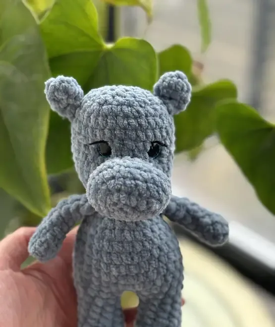 Crosetata manual cu multa atentie si dragoste Jucarie crosetata cu fir de catifea sunt moi si pufoase la atingere Umplutura hipoalergenica ochii si nasul sunt cu siguranta impotriva inghitirii Dimensiune - 12cm