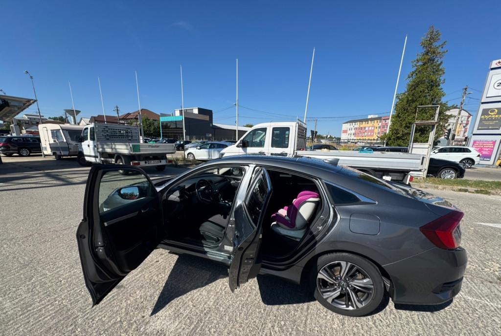 Airbag sofer SRS 8 incinte acustice 180 W Airbag pasager cu posibilitate de dezactivare Hands free cu Bluetooth Airbag-uri laterale Fata Comenzi audio pe volan Airbag-uri laterale tip cortina fata spate Confort si comoditate ABS Anti-Lock Braking System Sistem de climatizare automat cu doua zone Sistem de distributie a fortei de franare EBD Senzor de ploaie lumina Asistenta la franarea de urgenta BA Senzori de parcare fata spate Sistem de control al stabilitatii si tractiunii VSA Camera video pentru mers in marsarier Sistem de asistare la pornirea din rampa HSA Geamuri electrice One Touch fata spate Centuri de siguranta fata cu sistem de Geamuri electrice actionate din cheie pretensionare in 2 stadii Oglinzi reglabile electric Centuri de siguranta spate cu sistem de Oglinzi rabatabile electric pretensionare Oglinzi rabatabile electric din cheie Volan reglabil pe inaltime si adancime Sistem automat de franare cu functie de detectie Scaune fata incalzite Scaun sofer cu suport lombar reglabil electric Sistem de monitorizare presiune anvelope DWS Scaun sofer reglabil manual pe inaltime Sistem de avertizare a coliziunilor frontale FCW Bancheta rabatabila fractionat 60/40 Sistem mentinere banda de circulatie LKAS Cotiera fata reglabila Sistem de avertizare parasire banda de circulatie Cotiera spate cu suport pentru pahare Sistem de asistare a mentinerii benzii de Priza accesorii fata Exterior Limitator de viteza inteligent Lumini de zi cu LED Cruise Control adaptiv ACC cu functie Low Faruri cu LED faza scurta lunga ACC cu functie Low Speed Follow doar pentru AT Proiectoare de ceata cu LED Sistem de recunoastere a semnelor de circulatie Sistem de asistare pentru faza lunga HSS Sistem de alarma Inchidere centralizata cu 2 chei tip briceag Interior Tapiterie din material textil Manere portiere in culoarea caroseriei Volan imbracat in piele Schimbator viteze imbracat in piele Antena aerodinamica Pedale aluminiu Jante aliaj Honda 17 cu anvelope 215/50R17 Oglinda parasolar cu iluminare Kit reparatie pana Lumina in spatiu portbagaj Torpedou iluminat Lumina de curtoazie Lumina ambientala plafon Covorase fata spate cauciuc originale Honda Pachet legislativ trusa medicala extinctor 2 bucati triunghi reflectorizant Functii si tehnologie Mod ECON Sistem Stop Start doar pentru MT Computer de bord extins cu afisaj color Indicator schimbare treapta de viteza SIL Servodirectie asistata electric EPS Frana de parcare electrica cu functie Brake Hold Sistem multimedia Honda Connect cu ecran touchscreen 7 Navigatie Garmin integrata compatibilitate Apple Car Play si Android Auto Navigare Internet AM/FM/DAB Radio prin Internet