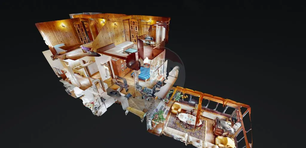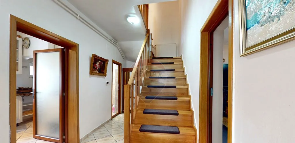 Cu 7 camere spațioase, proprietatea este potrivită atât pentru o familie care își dorește un stil de viață relaxat, cât și pentru cei care caută o casă de vacanță cu potențial real de utilizare sau închiriere. Compartimentarea este practică, iar atmosfera interioară reușește să îmbine căldura elementelor rustice cu liniile moderne, rezultând un spațiu în care te simți confortabil fără efort.