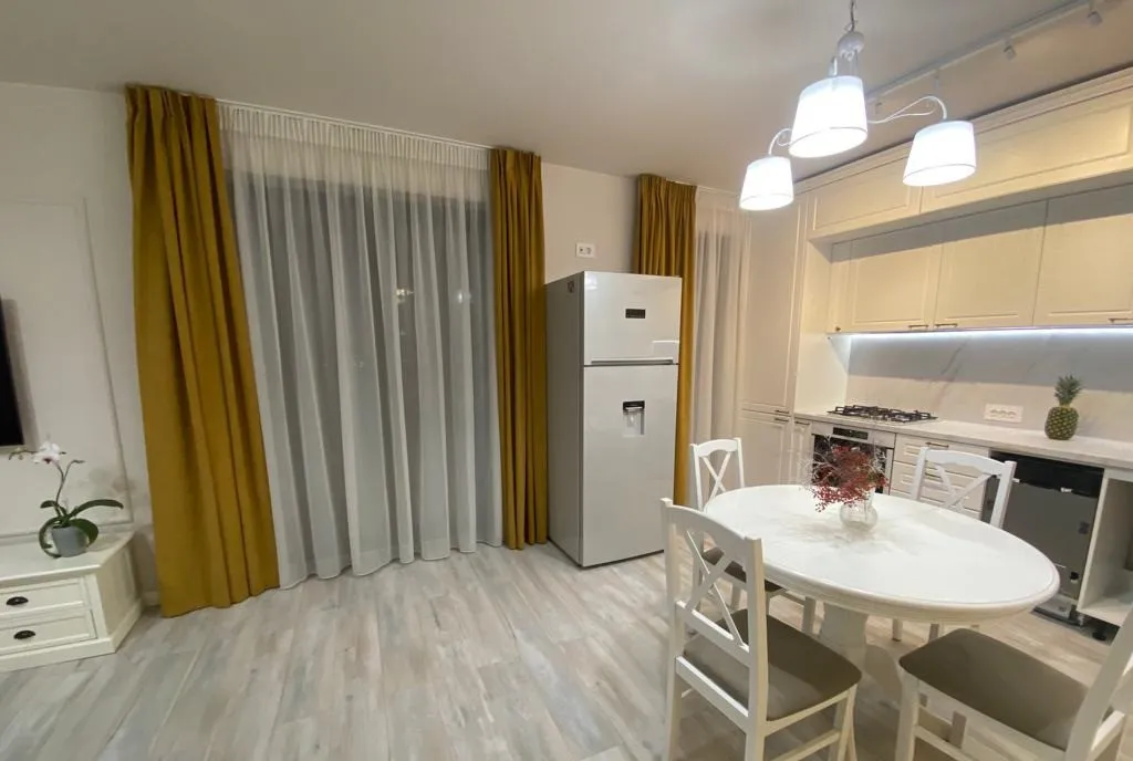 Va propunem spre inchiriere un apartament modern de 3 camere cu finisaje de lux situat in exclusivistul complex Darwin Residence Apartamentul este la prima inchiriere in curs de mobilare in ceea ce priveste paturile viitori chiriasi au posibilitatea de a-si alege modelul preferat de saltea de asemenea perdelele si draperiile urmeaza a fi montate 2 televizoare SMART TV mari pentru living si unul dintre dormitoare si se afla la etajul 2 din 3 al unui bloc cu lift finalizat in anul 2025 cu o suprafata utila de aproximativ 95 mp dispune de 3 camere care includ 2 dormitoare si un living modern si spatios Camerele sunt luminoase cu ferestre mari care permit luminii naturale sa inunde spatiul creand o atmosfera calda si primitoare Livingul este un spatiu deschis si generos ideal pentru relaxare mobilat modern cu un design elegant si functional Cele doua dormitoare sunt suficient de mari pentru a oferi confort si intimitate Unul dintre dormitoare poate fi folosit ca do...