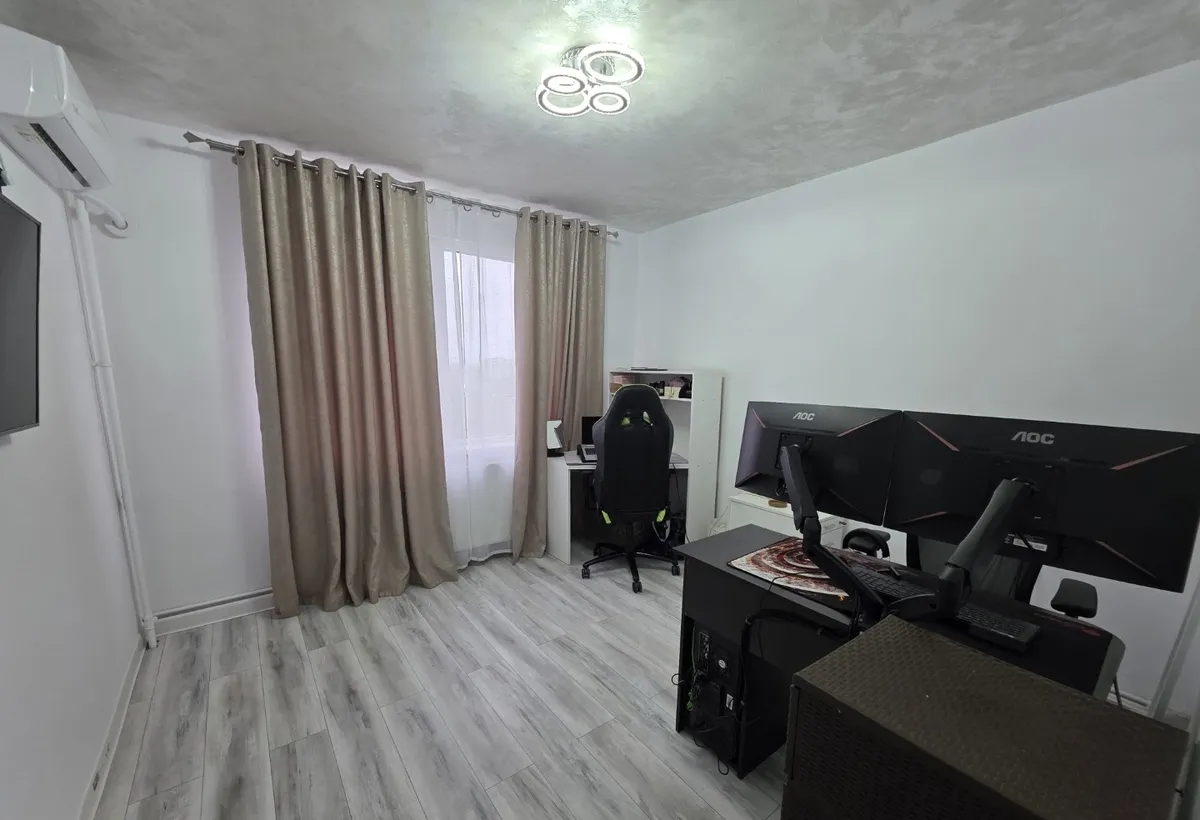 Apartamentul are centrala pe gaz, este renovat complet, cu instalatiile electrice si sanitare noi, gresie, faianta, parchet, termopane, usi interioare noi, usa metalica, 2 aparate aer conditionat, mobilat si utilat modern.