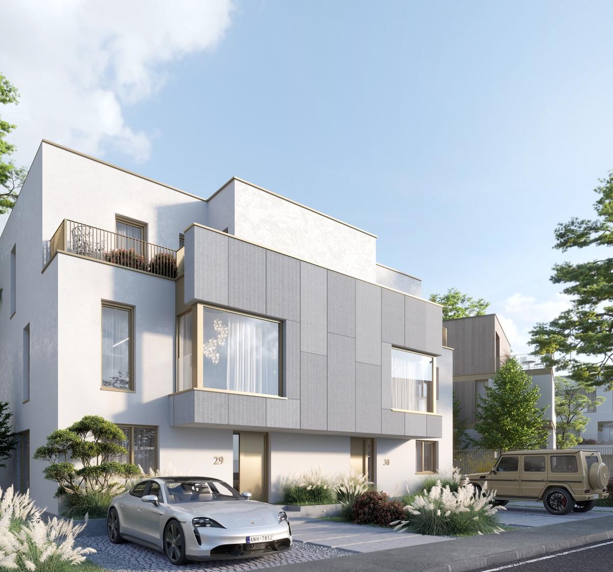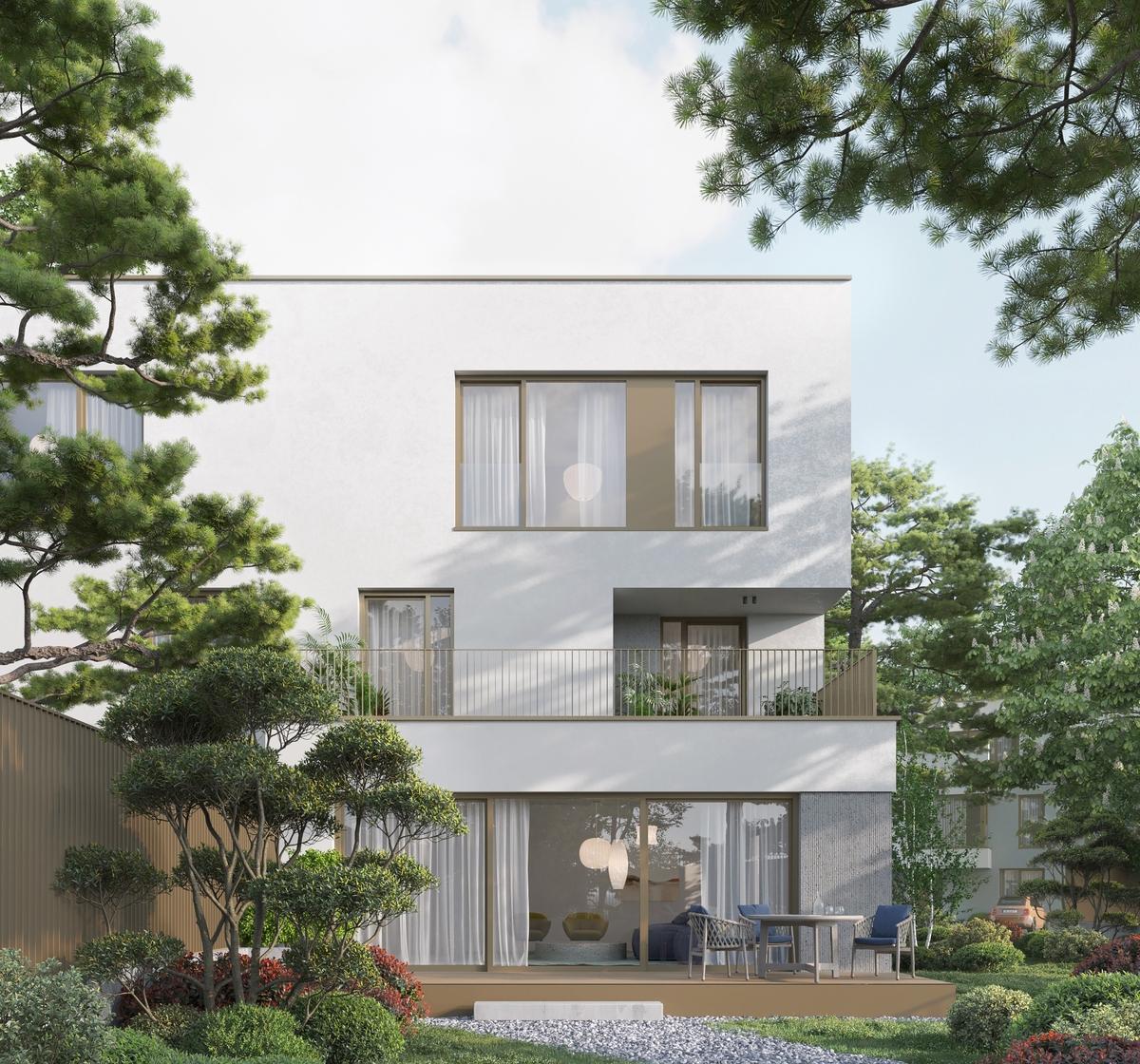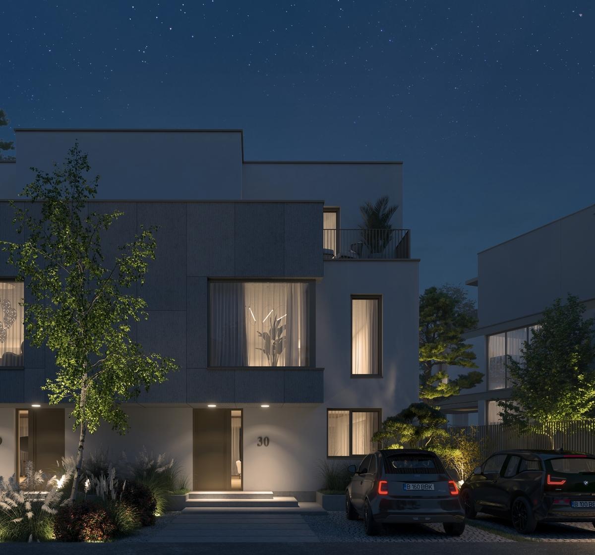 vila de tip A are un parter mai mare care permite o zona de living vasta o terasa primitoare la primul etaj cu vedere spre curtea din spate cu o zona acoperita si semnatura proiectului spatiul de locuit grandios de la etajul 2 Mereu legata de o alta vila de tip A sau B este inconjurata de o curte privata generoasa pe 3 laturi Vine in 3 configuratii diferite Pretul nu contine TVA
