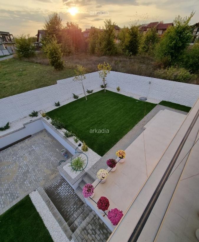 Va propunem spre vanzare o casa eleganta situata intr-unul dintre cele mai bine cotate ansambluri rezidentiale din zona de nord a Capitalei - Domus Stil Residence pe strada Emil Racovita nr 70 in imediata vecinatate a autostrazii A3 La doar 2 minute de Lemon Retail Park unde gasiti multiple optiuni de shopping cafenele si servicii Cartierul este modern cu supraveghere si paza urbanizat cu infrastructura completa si strazi asfaltate Regim de inaltime P 1 M parter etaj mansarda pod Curte libera 60 mp - perfecta pentru relaxare gradinarit sau spatiu de joaca pentru copii Vila are 5 camere spatioase si luminoase este foarte bine gandita si compartimentata inteligent La parter se gasesc bucataria si livingul tip open-space cu iesire in curtea din spate precum si o baie de serviciu La etaj se afla doua dormitoare matrimoniale fiecare cu baie proprie iar la mansarda - inca doua camere si o baie Proprietatea se afla intr-un mediu linistit cu ...