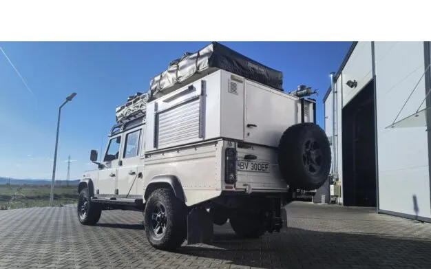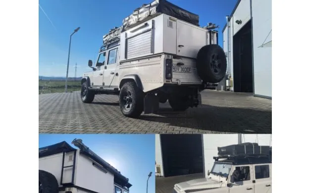 Defender 130 2 4 TD4 2009 198000 km 25000 euro fara TVA /- 155 PK Pachet de iarna scaune fata incalzite / parbriz incalzit Aer conditionat Incalzire Webasto Troliu Warn franghie plasma Izolatie fonica si termica suplimentara in cabina Portabaj acoperis Bear Cargo aluminiu Iluminare LED completa Consola acoperis interior Subwoofer sub cutie Amplificator suplimentar 4 difuzoare si 4 tweetere Set suplimentar de jante Roti glisante din otel fabricate la comanda Vopsea portbagaj Raptor Plus piese de schimb Inclusiv Hardtop Camper valoarea este de 2750 euro fara TVA 2 corturi de acoperis 140 cm 2 corturi sub perete 2 frigidere 45 litri Aragaz incorporat Hardtop din tabla de otel izolat Sistem de depozitare profile din aluminiu cutii din plastic Priza 220 V pentru incarcare A doua baterie Litiu MasterVolt AGM-SL 12/150 Ah Sistem electric Victron Pregatit pentru energie solara Copertina laterala 2 5 m Incalzitor solar de apa Suport pentru 4 biciclete