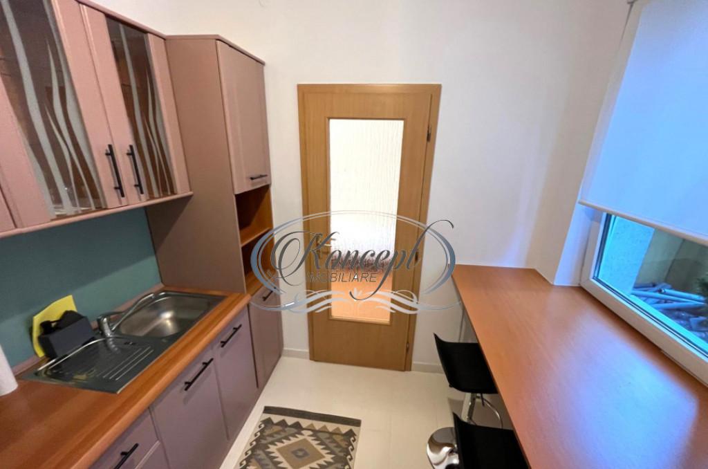 Koncept Imobiliare ofera spre vanzare o garsoniera situata intr-o zona centrala cu acces rapid in imediata vecinatate a Restaurantului La Cina Proprietatea este amplasata la parterul unei case insiruite cu regim de inaltime S P intr-un cadru linistit si verde ideal pentru cei care doresc sa combine proximitatea de zona zero cu intimitatea unei locatii retrase Garsoniera are o suprafata utila de 26 mp si este compusa din camera principala bucatarie baie si hol Inaltimea interioara de 3 metri aduce un plus de volum si luminozitate creand senzatia unui spatiu mai generos Nu exista posibilitati de recompartimentare insa configuratia actuala este functionala si potrivita pentru utilizare imediata Se vinde in stadiul de semifinisat fiind deja renovata si avand instalatia electrica complet inlocuita Sistemul de incalzire este nou realizat cu centrala proprie incalzire in pardoseala in camera si baie si calorifer in zona bucatariei Orientarea pe mai multe laturi asigura vent...