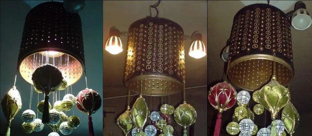 Lustra UNICAT din metal cu 3 becuri 2 becuri E-14 si 1 bec E-27 interiorul auriu exteriorul negru poza 2/3 pendul culoarea cuprului nou cu fir acoperire textila aceeasi culoare 50 lei poza 4/5 aplica sau plafoniera metal cu sticla mata 25 lei