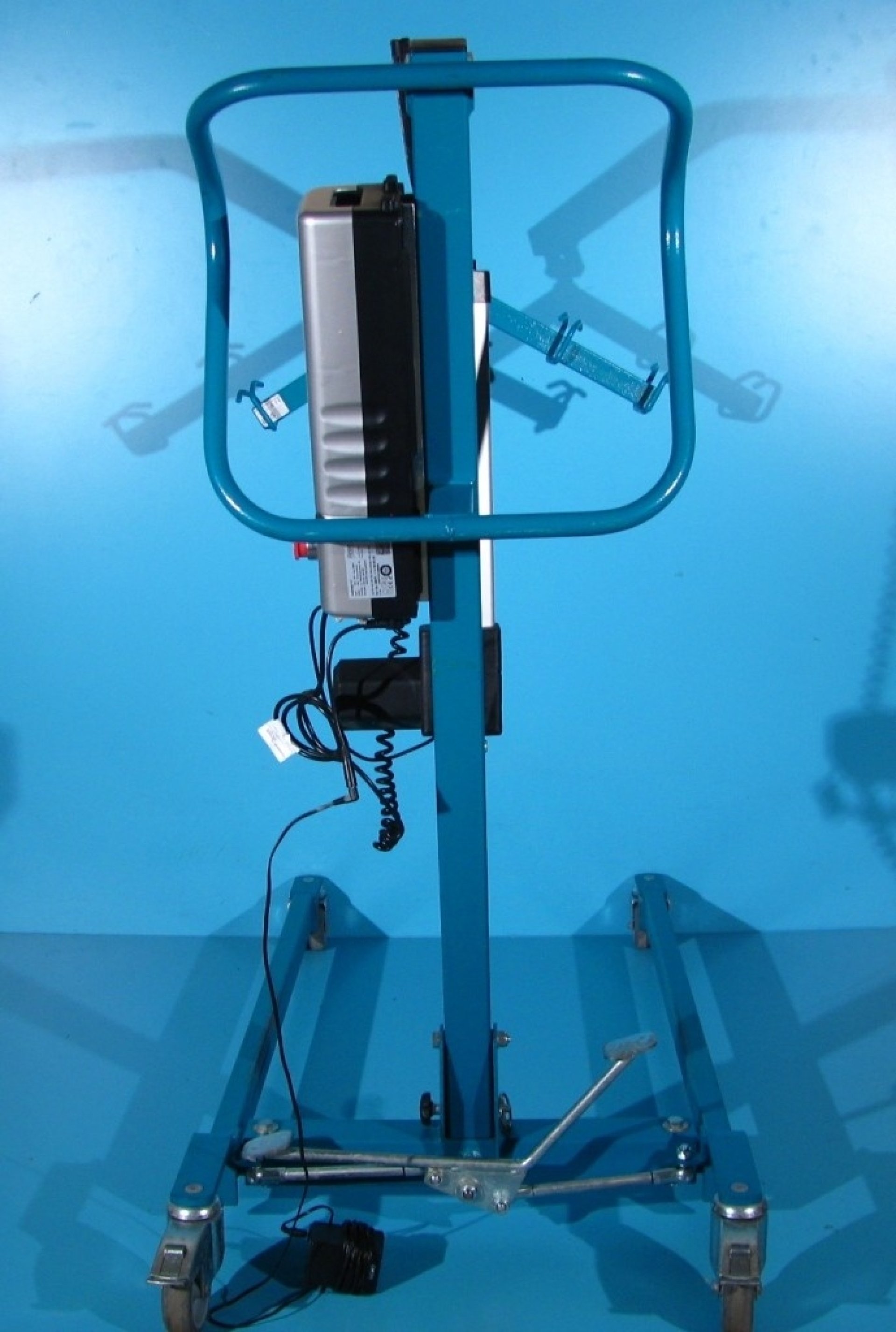 Acest elevator pentru pacienti trebuie operat de catre un asistent pentru ridicare, coborare si deplasare.