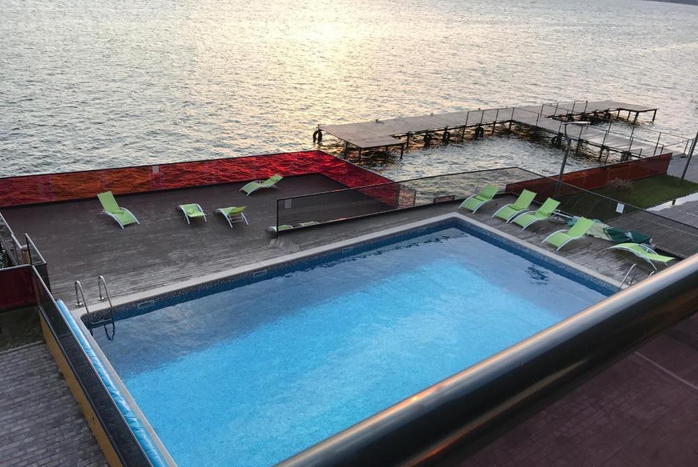 Apartament 2 camere in complex/bloc nou cu piscina si ponton propriu VILA SOPHIA 2 Apartamentul este construit cu finisaje de lux -etaj 2 din 8 -inaclzire in pardoseala -vedere spre mare -vedere panoramica- pereti de sticla -lift -ponton pe malul lacului Sutghiol -piscina proprie care deserveste doar blocul respectiv pe malul lacului -paza umana video -alarma -videointerfon -spatiile comune deschise -generoase -utilat mobilat aer conditionat -jaluzele electrige la geamurile exterioare -seif -racordat la toate utilitatiile gaze-apa-curent-net-tva Apartamentul este direct la Bulevard dar retras discret nu are nimic in fata situat la Bulevard intre Hotelul Regal 5 stele si Splendid 4 stele Recent a fost modernizata si largita plaja intre Yaki si Vega Apartamentul se poate inchiria conform schita -lunar pentru inchiriere minim anuala 600e inlcusiv perioada estivala -lunar pt cele 3 luni estivale 1300eur/luna discutabil -lunar in afara perioadei...