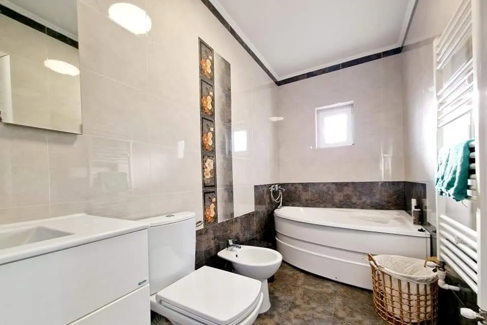 Vand vila P+1, zona Mamaia Nord, la 500 m de Hanul cu Peste, strada asfaltata. Casa este compusa din 3 dormitoare, living generos cu bucatarie, 2 bai, mobilata si utilata modern. Paturi mari de 1,80 m cu saltele de buna calitate. TV QLED, 4 bucati. Terasa mare amenajata, curte pavata, cu 2 locuri de parcare.