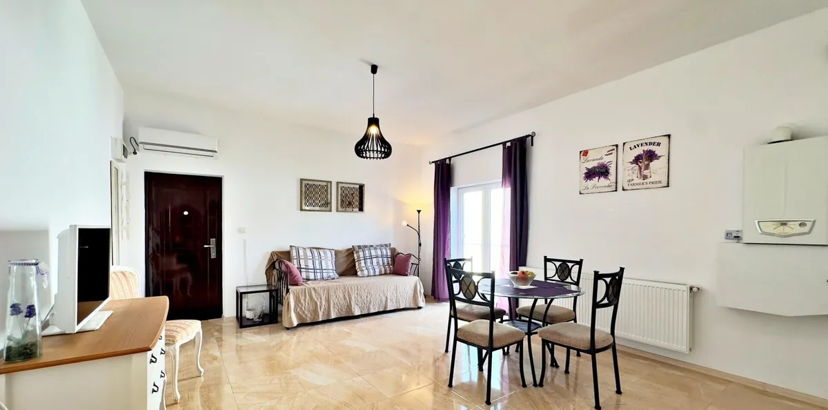 Mamaia Nord, apartament cu 2 camere, etaj 2, suprafata totala 50.95 mp. Locatie excelenta, cu acces usor la plaja Mackerel. Locuinta moderna, cu interior bine proportionat, mobilata si utilata, tamplarie PVC, centrala pe gaz si aer conditionat. Bloc termoizolat, cu parcare comuna, orientare vest. Proprietate ideala atat pentru locuit, cat si pentru investitie profitabila la malul marii. Se accepta si plata esalonata.