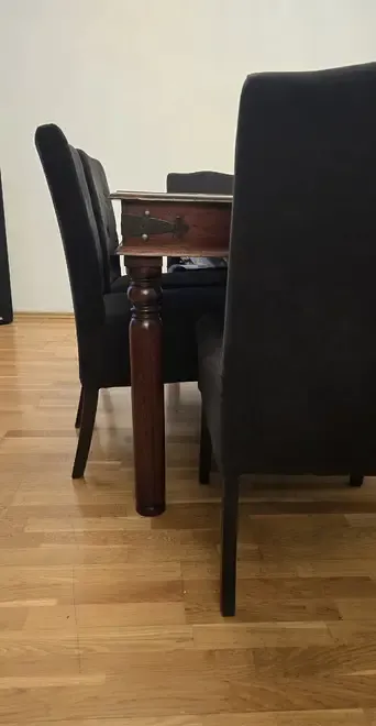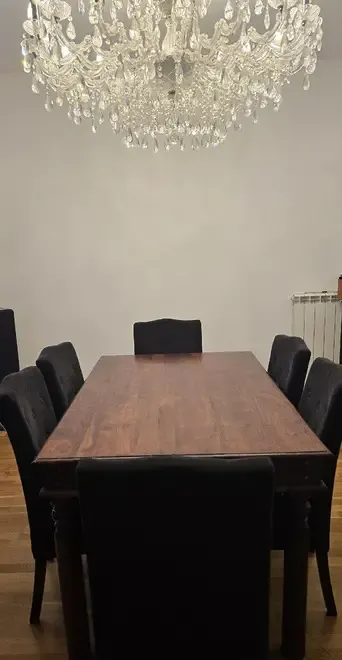 Masa dining lemn masiv stil clasic/vintage 8 scaune tapitate cu stofa neagra