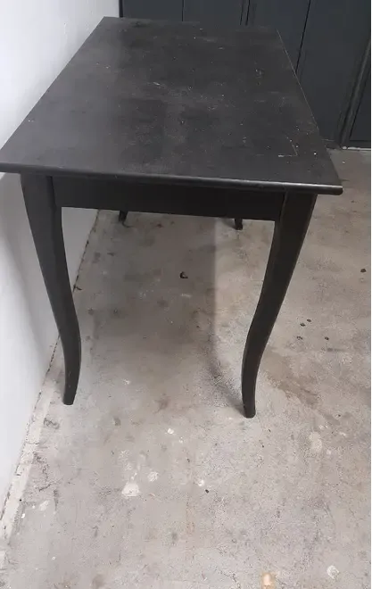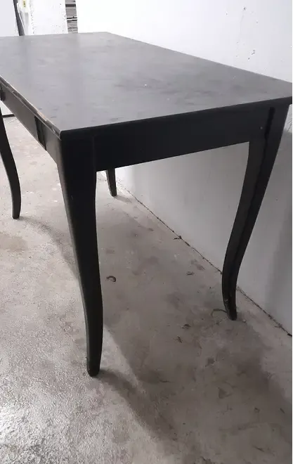 Se vinde o masa vintage neagra din lemn cu picioare curbate si cu un sertarel In stare f buna Inalt 74 Adanc 60 Lung 118 Usoare semne de uzura