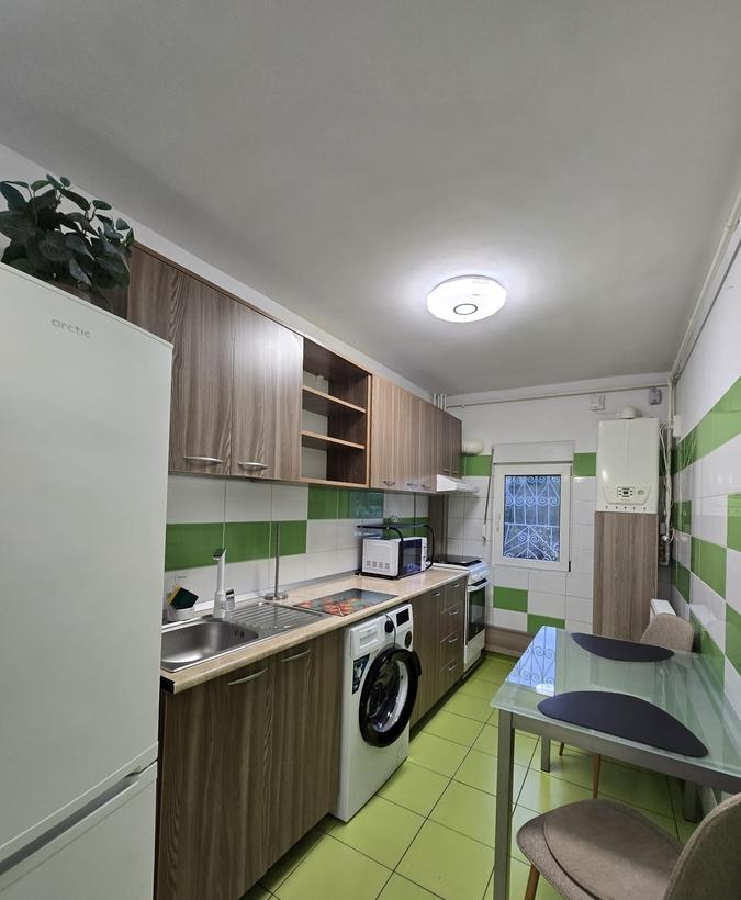 Va oferim spre inchiriere un apartament spatios modern si complet echipat situat in complexul rezidential Aqua City Residence situat in cartierul Giulesti intr-un bloc nou 2022-2023 la etajul 10 din 10 fara vecini deasupra - ideal pentru cei care cauta liniste confort si intimitate Dotari si specificatii o 2 camere decomandat 57 mp o Mobilat complet cu mobilier IKEA o Blat si masa de bucatarie din lemn natural o Set de balcon din lemn perfect pentru relaxare cu vedere panoramica o Centrala termica proprie Ariston o Aer conditionat Daikin controlabil prin Wi-Fi cu aplicatia Onecta o Masina de spalat rufe Whirlpool 9 kg o Masina de spalat vase Bosch o Plita Bosch cuptor Electrolux cuptor cu microunde Candy o Frigider cu congelator Electrolux o Chiuveta si robinet Franke o Hota uscator de rufe masa si fier de calcat o Plase de tantari tip rulou si plisse montate la ferestre si usi o Balcon cu vedere panoramica si vedere laterala spre Lacul Morii o Lo...