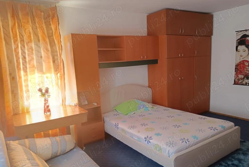 Garsoniera de inchiriat 38mp mobilata si utilata TV cu televiziune si internet masina de spalat rufe frigider aragaz si cuptor aer conditionat pat nou achizitionat situata in apropierea Camerei de comert si industrie a Romaniei etaj 6 8 gata de utilizare balcon inchis bucatarie separata apropiere metrou Unirea si Timpuri Noi statie de autobuz la iesirea din bloc loc de parcare inclus se prefera chiriasi fara animale de companie Pret chirie 450 E
