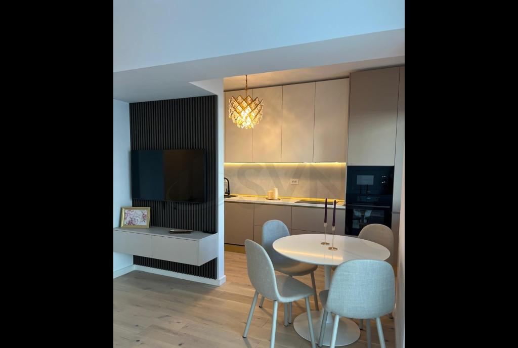 REA1025686 SVN Residentialist Pipera propune spre inchiriere un apartament cu 2 camere situat in complexul rezidential nou First Estates din Pipera Voluntari Apartamentul este disponibil pentru prima inchiriere si se afla intr-un bloc modern eficient energetic dotat cu panouri fotovoltaice si pompe de caldura ceea ce asigura costuri reduse la utilitati inclusiv incalzire gratuita Este complet mobilat si utilat cu electrocasnice moderne de calitate plita cuptor electric cuptor cu microunde masina de spalat vase masina de spalat rufe uscator de rufe si sistem de aer conditionat Incalzirea se face prin pardoseala oferind un confort termic superior pe tot parcursul anului Apartamentul este luminos cu finisaje premium si dispune de spatii bine compartimentate Ideal pentru un cuplu sau un profesionist care cauta un stil de viata modern si confortabil intr-o zona rezidentiala linistita dar aproape de zonele de birouri si facilitati din nordul Bucurestiului Loc de parcare inclus in pret Disponibil imediat pentru mutare