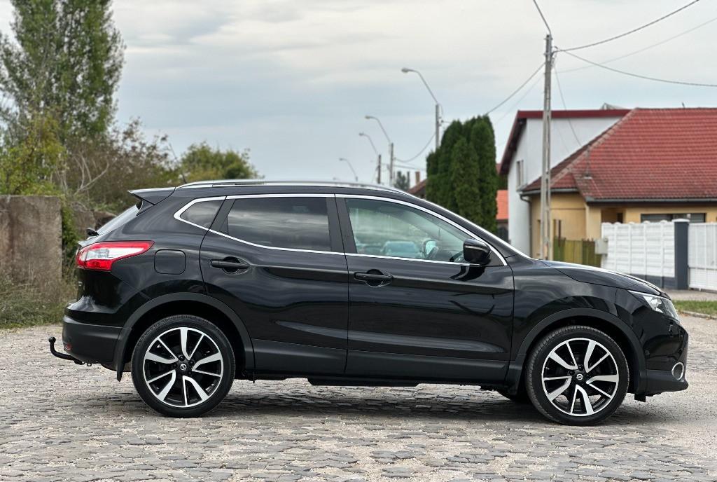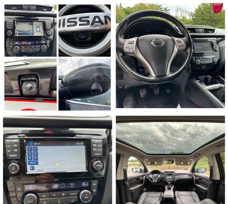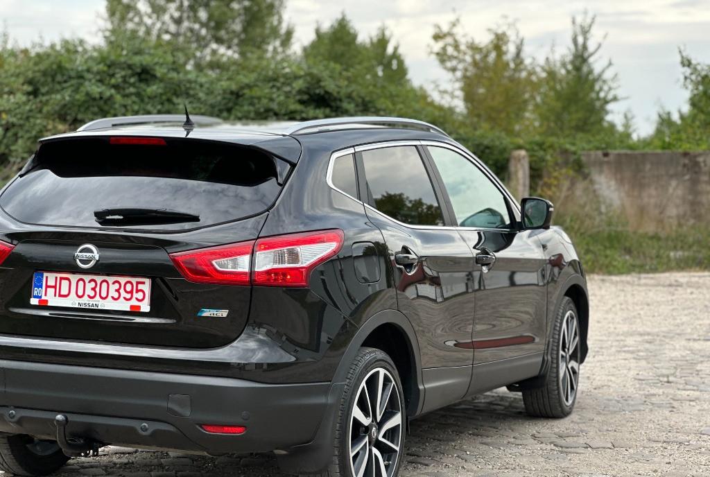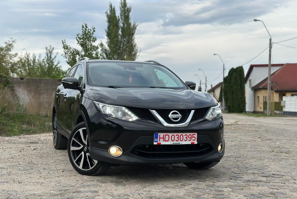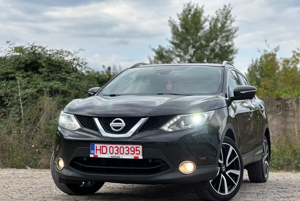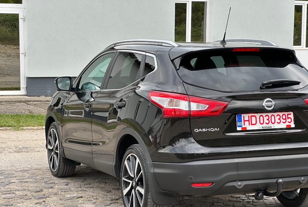 Nissan Qashqai Tekna 2 WD faruri BiXenon 81 kw - 110 cp camere 360 pe oglinzi si in grila panoramic actionat electric 1 5 diesel Pure Drive dci scaune banchete piele cu zero uzura km 206 000 camera video marsarier af 2015 navigatie mare color 3D cu touchscreen harti Eu Ro