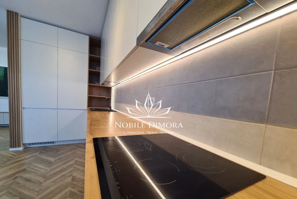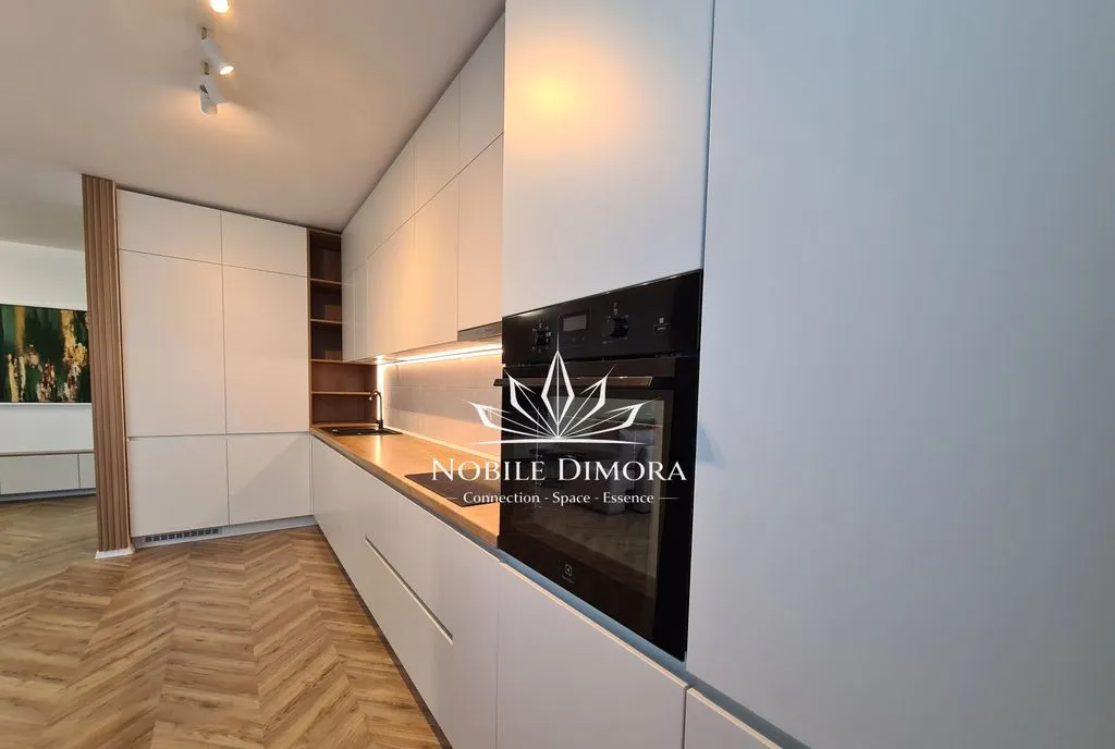 Apartamentul este complet mobilat si utilat modern, cu electrocasnice incorporate (frigider, plita, cuptor, hota, masina de spalat vase, masina de spalat rufe, TV), spatii ample de depozitare si design interior realizat de profesionisti. Dotari: incalzire in pardoseala cu centrala proprie pe gaz, aer conditionat, sistem smart home, video interfon. Blocul este izolat si are 2 lifturi. Abonamentul TV si internet sunt incluse in pretul chiriei