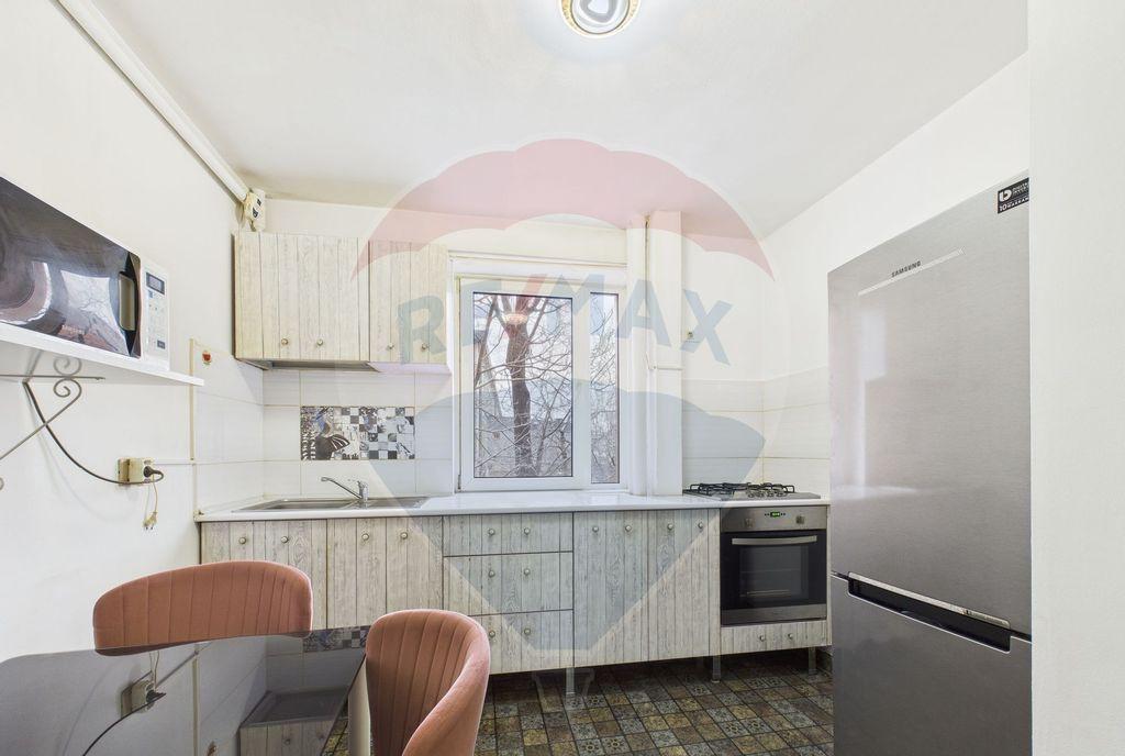 Apartament cu 2 camere situat in inima cartierului Floreasca una dintre cele mai verzi si boeme zone ale Capitalei unde linistea atmosfera selecta si conexiunile rapide atat cu nordul cat si cu centrul orasului creeaza cadrul ideal pentru locuit Proprietatea se afla pe Strada Mihail Ivanovici Glinka nr 9 intr-un imobil construit in 1958 reabilitat termic neexpertizat aflat la etajul 3 din 3 Apartamentul are o suprafata utila de 46 5 mp si este decomandat cuprinzand living dormitor bucatarie hol baie cu aerisire naturala si camara la care se adauga o boxa de 5 32 mp la subsol - spatiu de depozitare pretios greu de gasit la constructiile noi Orientarea sudica asigura lumina naturala pe tot parcursul zilei Locuinta necesita renovare ceea ce ii ofera viitorului proprietar libertatea de a o amenaja dupa propriile gusturi Puncte de interes in zona Educatie Scoala Gimnaziala Maria Rosetti 5 min Gradinita Albinuta 5 min Liceul C A Rosetti 15 min Lice...