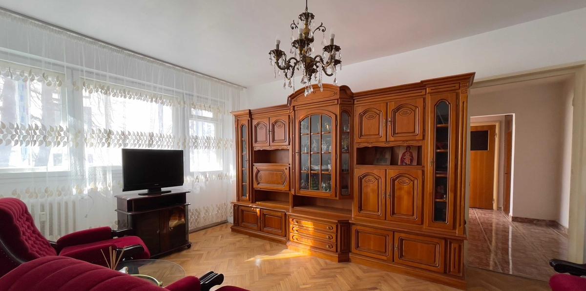 Apartament spatios de 3 camere de vanzare in zona Diham o zona verde si linistita bine conectata la mijloacele de transport scoli magazine si parcuri Suprafata totala este de 74 21 mp situat la etajul 6 din 10 intr-un bloc construit in 1980 izolat termic placat cu lift Compartimentarea este semi-decomandata cu dubla orientare Sud si Est asigurand lumina naturala pe tot parcursul zilei Balconul este inchis cu termopan Apartamentul dispune de doua grupuri sanitare si beneficiaza de imbunatatiri partiale fiind ideal pentru a fi amenajat dupa preferintele viitorului proprietar Incalzirea se face prin sistem centralizat RADET Nu dispune de loc de parcare rezervat insa exista posibilitatea de parcare in zona Actele sunt la zi si se accepta credit bancar