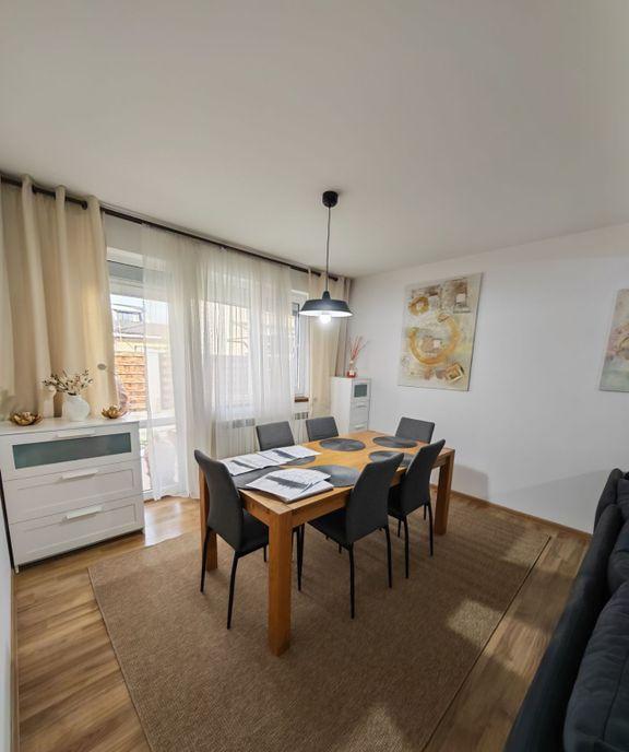 Buna ziua sunt Florina Mantescu si va recomand aceasta vila frumoasa pentru resedinta familiei dumneavoastra Vila este amplasata pe o strada linistita in apropiere de Jolie Ville Mall Constructia a fost finalizata in 2020 iar finisajele s-au finalizat in 2021 Casa a fost amenajata cu ajutorul unui designer s-au investit sume importante in finisaje si echipamente Pretul de vanzare include mobilierul fix bucataria baile dresingurile si aparatura electrocasnica din bucatarie In total sunt 7 camere si pot fi amenajate pana la 6 dormitoare Impartirea pe fiecare etaj este urmatoarea Parter living cu zona de dining si bucatarie deschisa camara hol baie cu dus camera tehnica birou/dormitor terasa garaj pentru o masina Etaj 1 dormitor matrimonial dresing baie cu dus terasa dormitor secundar baie stil spa cu dus si cu cada balcon Etaj 2 camera hobby poate fi dormitor balcon dormitor copii baie cu dus si cu cada hol balcon bucatarie secundara com...