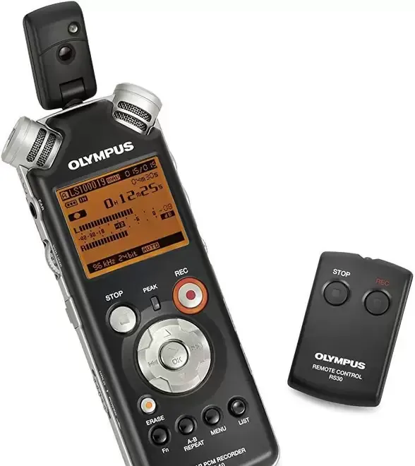 Suporta telecomanda de la distanta tip Olympus RS-30 disponibila optional precum si microfoane externe de sala sau lavaliera dar si intrare de LINE-IN pt mixere audio