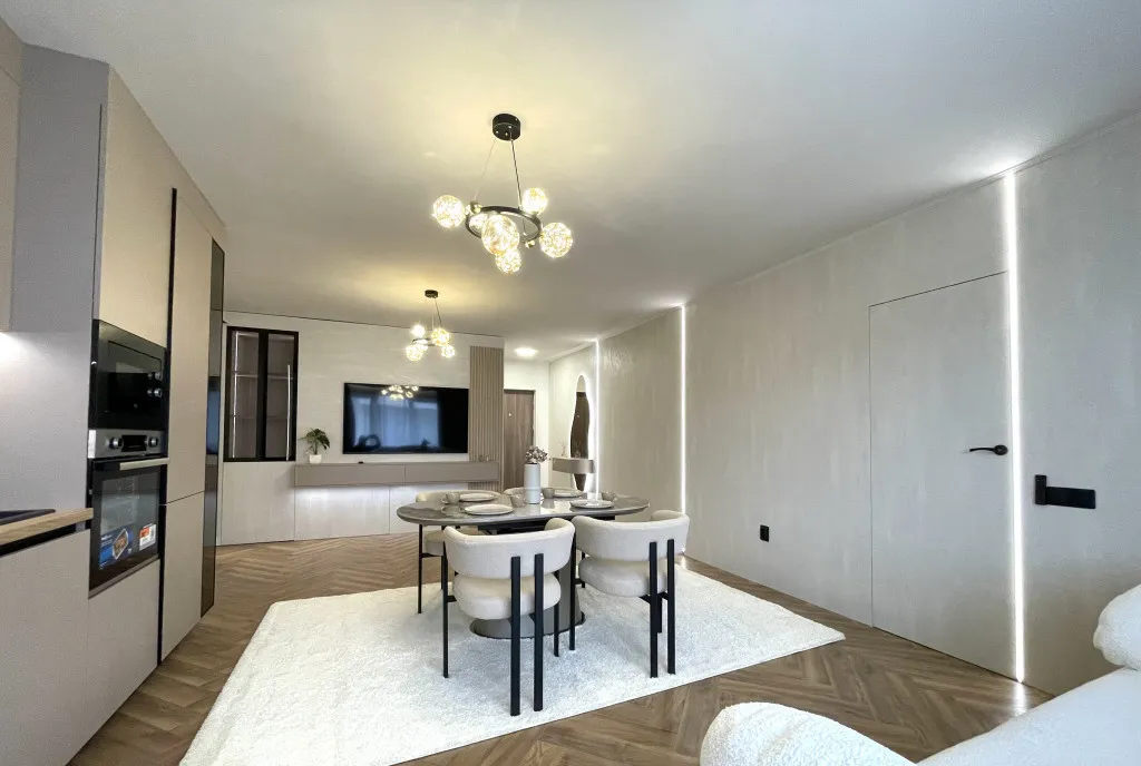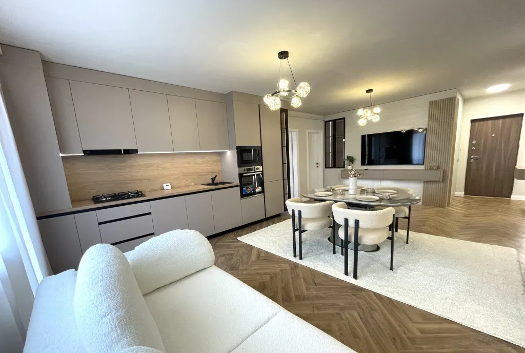 Se vinde mobilat utilat complet, conform pozelor de prezentare, finisaje premium cu materiale de calitate, mobilier realizat la comandă, electrocasnice noi aflate in garanție.