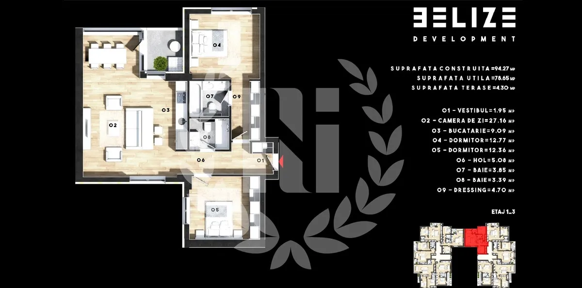 Fotografiile au titlu de prezentare, mobilierul si decorarea apartamentului se poate realiza la cerere.