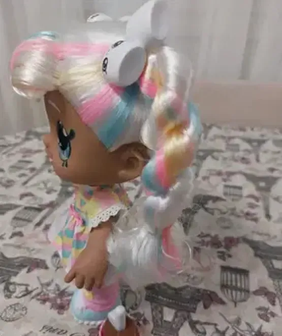 Buna Sunt Marsha Mello si sunt dulce ca o acadea Cu hainele mele colorate pastel si parul cu suvite curcubeu ador toate lucrurile dragute Prind viata din momentul in care ma iei in brate Am ochii mari iar capul meu se misca tare haios Apropie bezeaua de gurita mea si descopera cum iau o muscatura Setul include 1 papusa Marsha Mello de 30 cm 2 accesorii - boluri cu bezele
