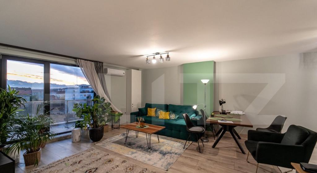 Blitz va propune un apartament modern situat la un etaj superior intr-o cladire recent construita oferind panorame spectaculoase asupra unei zone verzi si a orasului Orientarea locuintei permite surprinderea rasaritului din zona de bucatarie si a apusului din living si dormitoare -- un avantaj rar intalnit Proprietatea dispune de doua dormitoare luminoase doua bai si un hol generos Zona centrala este reprezentata de spatiul de zi si bucataria initial conceputa open-space ulterior separata elegant printr-un perete culisant din sticla ceea ce permite atat intimitate cat si pastrarea luminozitatii Din living se acceseaza un balcon amplu cu o priveliste deschisa ce pune in valoare intreaga imprejurime Suprafata utila este de aproximativ 73 mp completata de o boxa de depozitare si un loc de parcare subteran care se poate achizitiona separat cu suma de 19 000 euro Parcarea este un element deosebit al acestui pachet fiind pozitionata astfel incat nu are vecini directi sau...