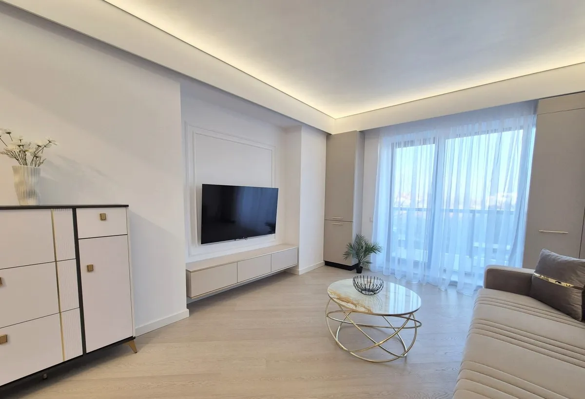 Avem placerea sa va prezentam, cu 0% COMISION pentru chirias, un apartament de 2 camere superb complet mobilat si utilat, dispunand de loc de parcare in garajul subteran si de o pozitie exceptionala in Nordul Capitalei, la doar 5 min de Promenada Mall sau Baneasa Mall, in complexul rezidential Cortina North by Eden Development, complex inchis ce dispune de paza si supraveghere continua, precum si de piscina proprie si wellness center cu spa.
