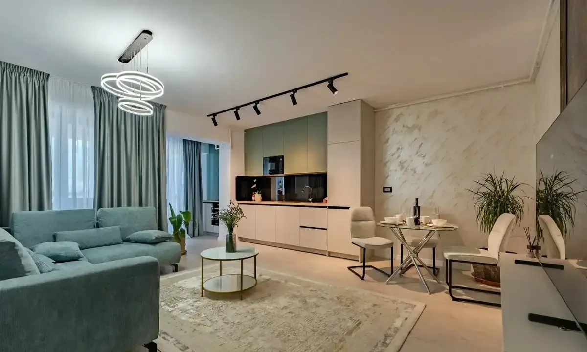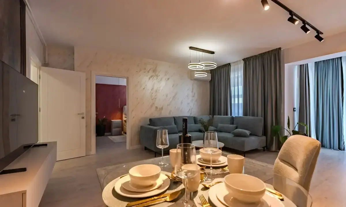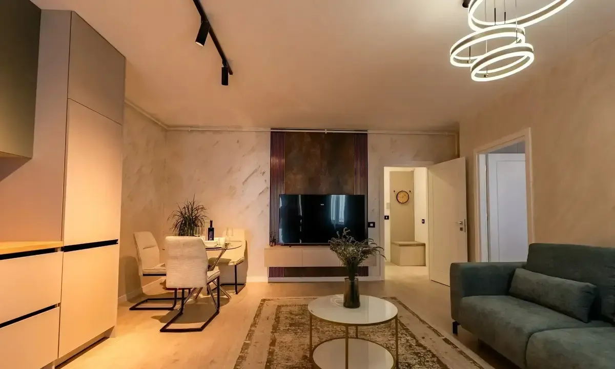 vanzare apartament lux, 2 camere,Sos. Colentina, vis a vis de complexul Rose Garden, an constructie 1970, semidecomandat, suprafata utila 45 m2, suprafata totala cu balcon 50 m2, etaj 5/10, complet mobilat si utilat nou, lux si modern (g+f+p+t+um), bloc reabilitat termic. Apartamentul se vinde complet mobilat si utilat si a fost renovat total acum 2 ani inclusiv partea electrica, termica si sanitara. Dotari: 2 balcoane (unul inchis in termopan la living si unul la dormitor inclus in camera), aer conditionat, televizor led, plita pe gaz, cuptor electric, hota, combina frigorifica, masina de spalat, cuptor cu micorunde, dressing spatios in hol, dressing in living pe toata suprafata peretelui (nu apare in poze, vezi video din anunt!) Apartamentul este stradal, cu acces imediat la statii RATB si tramvai, iar metroul Obor se afla la aproximativ 10 minute de mers pe jos. Zona este centrala si foarte bine conectata, cu acces rapid la parcuri, cafenele, restaurante si Veranda Mall,