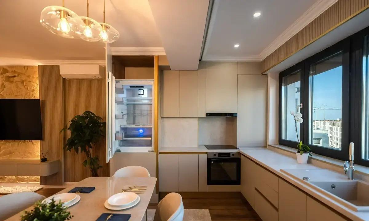 Apartament cu 2 camere o Concept modern si eficient compartimentat Apartamentul este proiectat pentru a maximiza spatiul si confortul o Bucatarie si living open-space Bucataria si livingul sunt integrate intr-un spatiu deschis perfect pentru socializare si relaxare o Dormitor spatios Dormitorul ofera un spatiu generos si confortabil pentru odihna