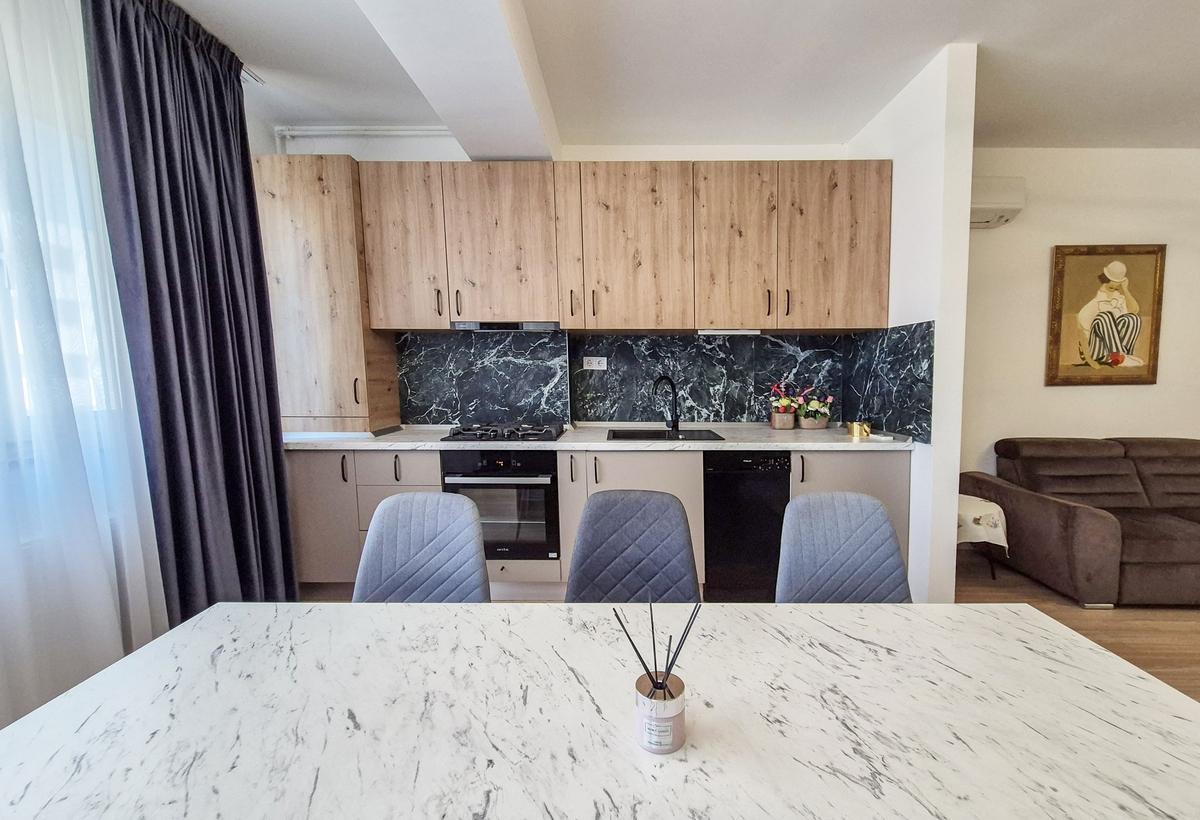ID intern 5759 Regis Imobiliare va prezinta spre inchiriere un apartament modern situat Ultracentral Eleganta si confortul se contopesc in acest apartament care va este oferit spre inchiriere cu mobilier modern si electrocasnice de cea mai buna calitate Situat la etajul 1/5 apartamentul beneficiaza de o suprafata de 65 mp distribuiti astfel -hol de intrare -living -bucatarie -dormitor -baie la care se adauga cei 5 mp ai balconului deschis Datorita pozitionarii Ultracentrale langa Aula Universitatii aveti acces facil spre Centrul Istoric dar si spre alte zone de interes ale orasului Apartamentul este valabil din 15 septembrie Comisionul agentiei este de 50 tva dintr o chirie o singura data la semnarea contractului