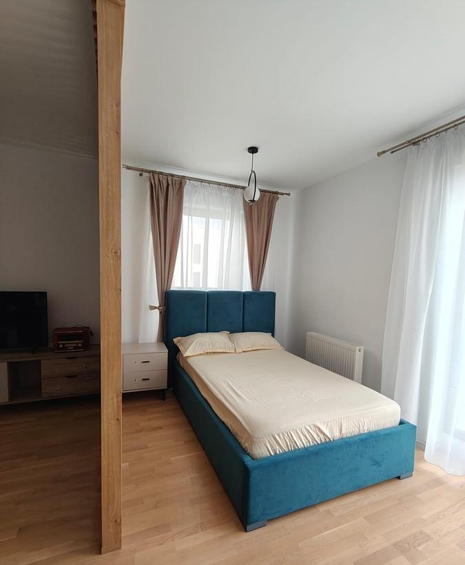Garsoniera in suprafata totala de 44 mp complet mobilata si utilata de inchirial Dispune de boxa si loc de parcare propriu deasemena camera de zi este dotata si cu un pat pentru un plus de confort