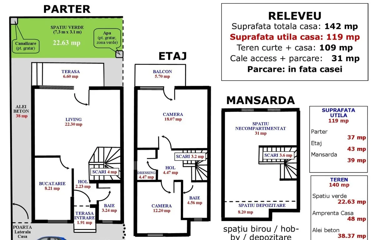 - suprafata utila de 119 mp si o compartimentare eficienta