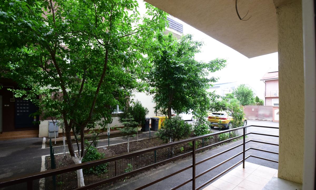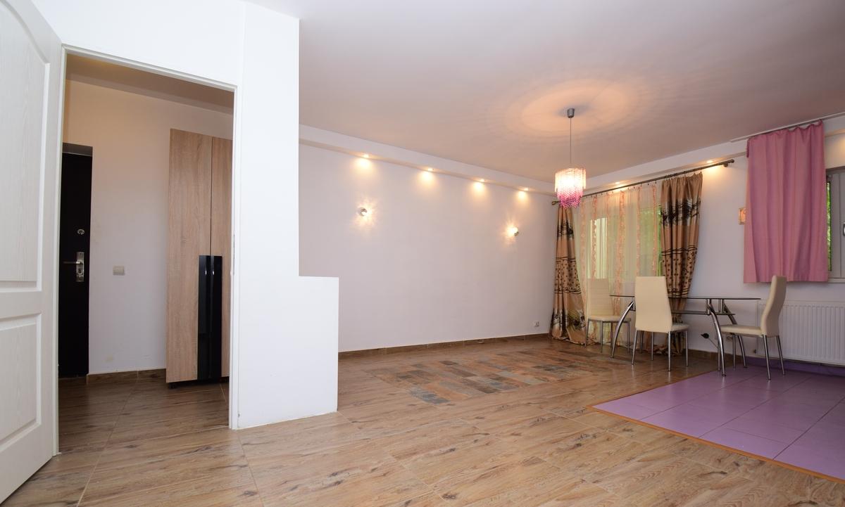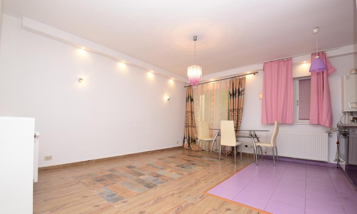 Apartamentul este situat la parterul unui bloc cu doar 3 niveluri construit in 2015 si dispune de o suprafata utila totala de 56 31 mp Compartimentarea este semidecomandata cu hol la intrare living cu bucataria deschisa in suprafata de 26 78 mp apoi hol cu acces in baie si dormitor Balconul este deschis si se poate accesa din living Detine centrala termica proprie gresie faianta parchet geamuri termopan aer conditionat