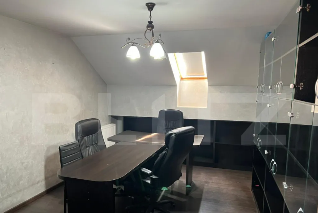 -La parter sunt trei camere (birouri), un grup sanitar, un hol generos și casa scării.