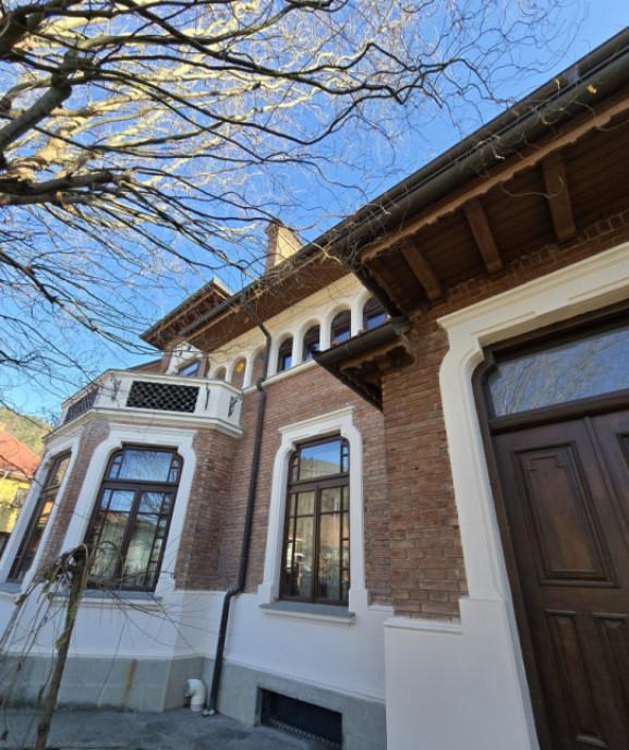 Asa cum v-am obisnuit in ultimii ani va prezentam spre vanzare inca o proprietate exceptionala in Piatra Neamt Raritate pe piata Vila Eliza constructie interbelica din 1929 inscrisa ca monument istoric amplasata intr-una dintre cele mai reprezentative zone ale orasului Piatra-Neamt - Str Stefan cel Mare Proprietatea este detinuta de o societate si este disponibila imediat Imobilul pastreaza un caracter arhitectural distinct cu fatade din caramida aparenta ancadramente profilate soclu inalt si elemente decorative specifice epocii Este o proprietate potrivita pentru cei care apreciaza stilul neoromanesc si permite o utilizare reprezentativa cu impact vizual si reputational Parametri cheie Teren intravilan 832 5 mp din acte / 835 mp masurat Cladire principala C1 regim S P 1 amprenta la sol 254 mp Subsol 4 camere - foarte spatios complet amenajat cu tavane inalte -- ideal pentru crama sala de sport sauna birouri amenajare la alegere Parter 4 camere 2 bai bucatarie Etaj 4 camere 2 bai Anexa C2 magazie 26 mp Curte generoasa cu mai multe locuri de parcare garaj Potential de utilizare in functie de reglementari si avize - resedinta de prestigiu - sediu reprezentativ / birouri premium - clinica / servicii medicale private concept boutique - spatiu cultural / galerie Pret 1 399 000 EUR Disponibilitate imediat La cerere documentatie fotografii suplimentare si programare vizionare Id intern P228695
