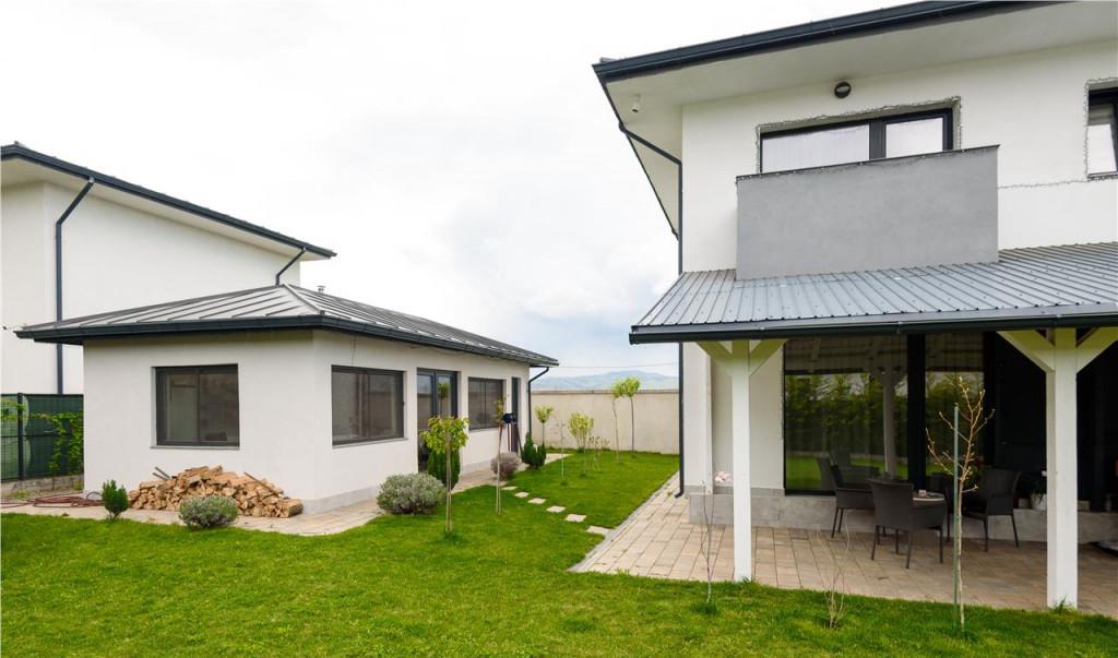 Comision cumparator 0 ASCENDENT IMOBILIARE recomanda spre vanzare o proprietate moderna finalizata pe segmentul LUX din ansamblul Diferit Haus Cristian dispusa pe P E cu o suprafata de 114 mp utili si 500 mp teren situata in acest cartier exclusivist care confera prin natura arhitecturii implementate a executiei lucrarilor si a comunitatii create o multime de beneficii ale unei vieti de calitate Designul intregului cartier a fost inspirat de privelistea catre peisajul montan care se diferentiaza prin unicitatea zonei dar si de stilul de viata care se doreste a fi si transmis catre viitorii proprietari Casa este proiectata pe doua niveluri si include urmatoarele - la etaj trei dormitoare din care unul matrimonial cu baie proprie si acces pe balcon inca o baie care deserveste celelalte doua si hol - la parter un living generos cu expunere spre terasa baie de serviciu hol de acces scara interioara si o bucatarie ampla luminoasa complet mobilata si utilata cu zona de dinning si spatii inteligent compartimentate pentru a oferi posibilitati multiple Proprietatea detine o suprafata vitrata suficient de mare astfel incat lumina naturala si energia pozitiva sa predomine Amenajarea interioara a fost creata cu bun gust pentru a da nastere unui mediu ambiant placut cat mai confortabil depasind si cele mai exigente asteptari Completeaza oferta faptul ca se beneficiaza de un foisor pentru momentele cu cei dragi ce detine baie proprie si spatii de depozitare terasa acoperita tamplarie Salamander cu 3 foi incalzire in pardoseala pe toata suprafata utila centrala termica Viessmann masina de spalat rufe masina de spalat vase Bosch uscator hota profesionala cuptor electric combina frigorifica incorporabila Samsung TV living Smart QLed diagonala de 165 cm lada frigorifica in foisor marca Whirlpool de 200 l sistem de alarma si supraveghere si multe altele pe care le veti regasi la vizionare De apreciat faptul ca toata curtea este imprejmuita perimetral cu 61 de tuia de 3 5 m inaltime oferind intimitate si stare de bine detine sistem automatizat de irigatie peisagistica si un intreg cadru boem Imobilul se vinde mobilat-utilat complet si dispune de toate utilitatile gaz curent apa canalizare internet cu fibra optica si iluminat public cu LED Spatiile largi terasa si curtea generoasa contureaza locul perfect pentru a va relaxa si a crea amintiri alaturi de cei dragi evidentiind notiunea de ACASA Se remarca si prin apropierea de toate punctele de interes local precum magazine statii RATBV gradinita scoala primarie clinica etc Pretul nu impune TVA casa fiind pe persoana fizica Consilier dedicat acestei oferte domnul George Mosor 0732847048