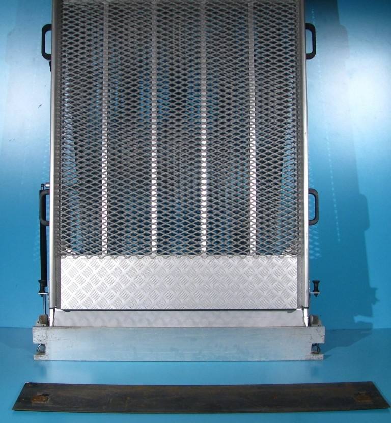 Pistonul cu gaz si manerele laterale ajuta extinderea sau plierea rapida a rampei, aceasta are un sistem de blocare in pozitia pliat.