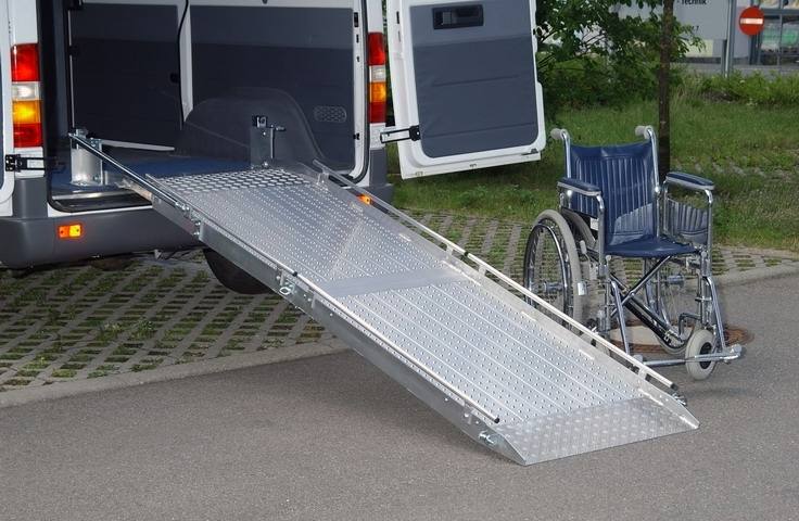 Rampa auto pliabila Milos RA10 se poate monta intr-un mijloc de transport tip dubita cu acces pe partea din spate sau lateral, permite accesul in siguranta a unei persoane imobilizate intr-un scaun cu rotile manual, sau actionat electric.
